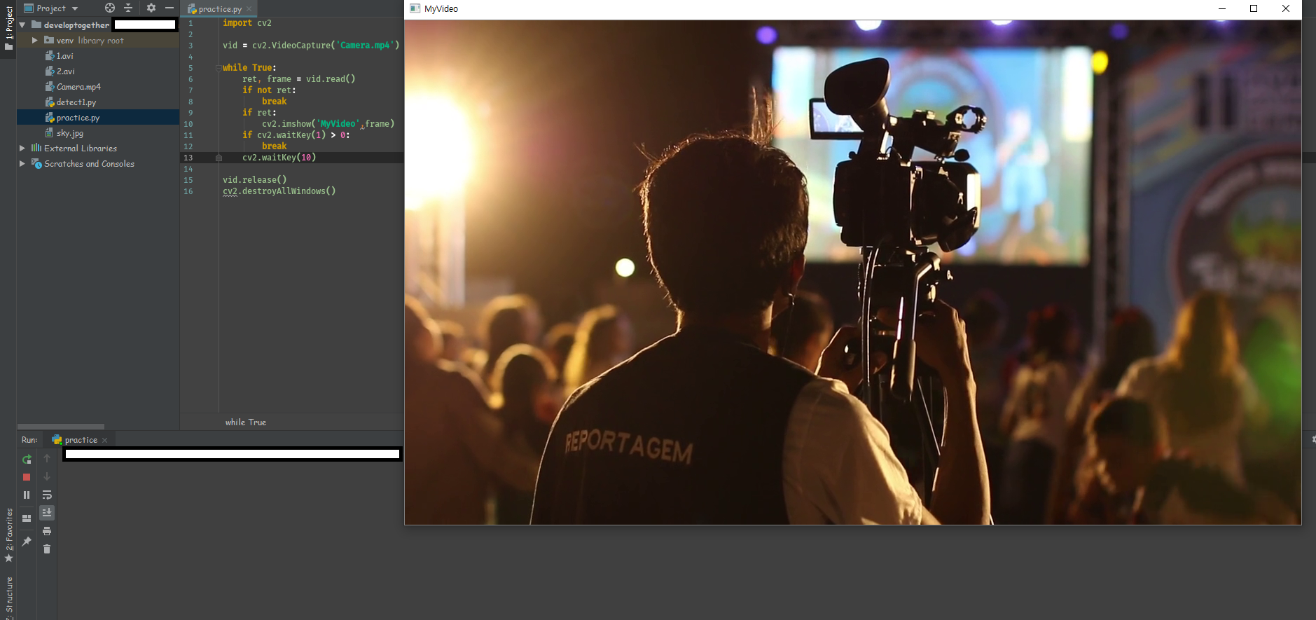 이 코드를 실행시켜보자. Camera.mp4의 위치에는 자신이 사용하고 싶은 동영상의 경로를 써주면 된다.