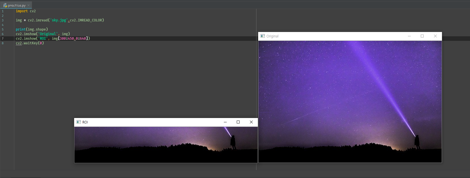 - 배열의 형태 예시 (480, 640, 3) -> 점 하나를 표현하는 [B, G, R] 형태의 배열이 한행에 640개씩 들어있고, 이런 행이 도합 480개 있음